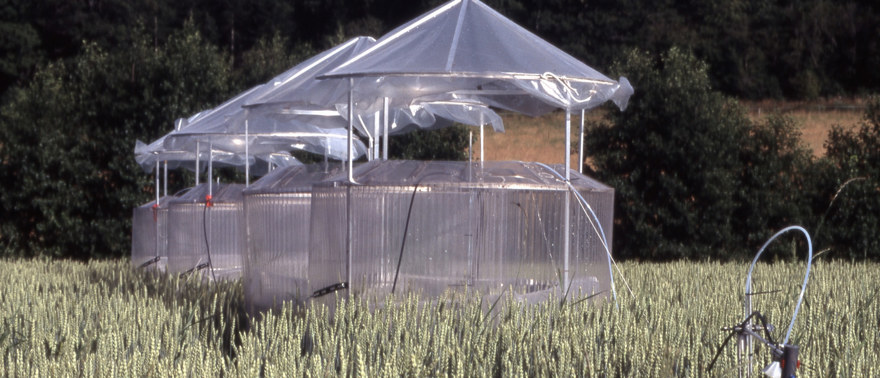 Under många somrar har Håkan Pleijel arbetat ute i fält och placerat så kallade fältkammare över jordbruksgrödor. Inne i dessa kammare har halten av marknära ozon och koldioxid ökats eller minskats av forskarna.